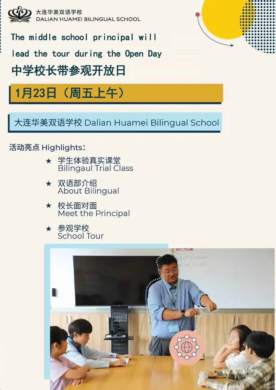 想亲眼见“双语教育”不只是“说两句英文”?1月23日周五上午,大连华美双语学校开放日,中学校长亲自带队,带你走进真实的双语校园!