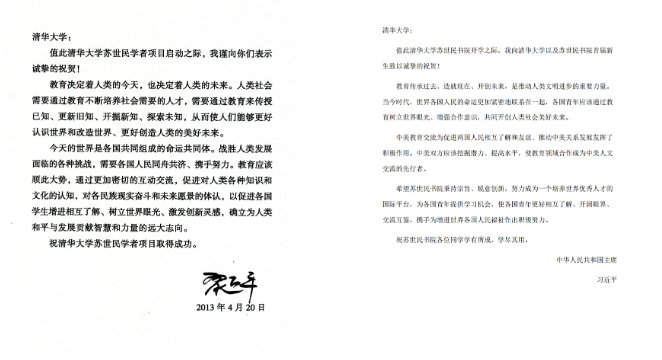 清华大学苏世民书院秉承“立足中国、面向世界”的原则,整合全球一流教育资源,依托清华大学综合实力,积极探索国际人才培养和人文交流新模式。作为清华大学新百年发展的重点举措,项目自创建伊始即得到全球各界领导者的关注和支持。中国国家主席习近平和美国前任总统奥巴马分别两次发来贺信。